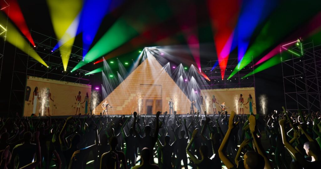 El elemento más destacado del diseño será sin duda una espectacular pirámide de luces LED de 96 metros cuadrados que presidirá el espacio. El escenario contará además con 200 metros cuadrados de pantallas LED con una resolución de 10k y hasta 94 focos de luces móviles que permitirán todo tipo de efectos y aportarán aún más espectacularidad.