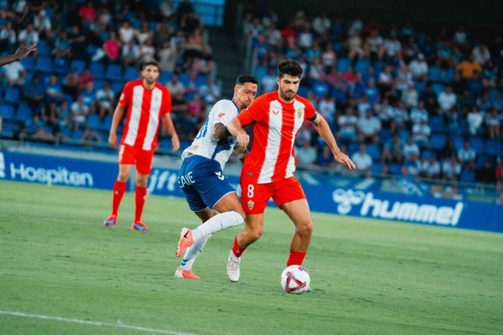 El CD Tenerife cae ante el Almería 0-1 con uno menos tras una primera parte intensa marcada por el dominio de los blanquiazules