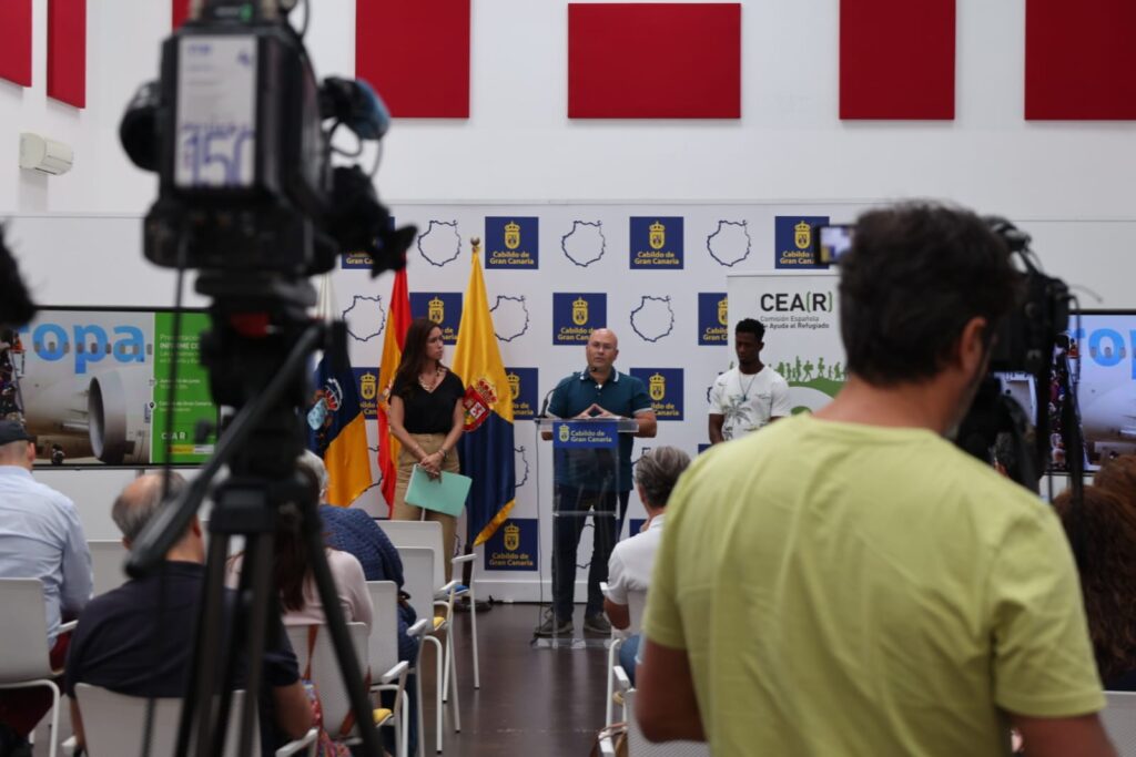 El coordinador general de la Comisión Española de Ayuda al Refugiado (CEAR), Juan Carlos Lorenzo, y la abogada Beatriz Alfonso presentaron este jueves en rueda de prensa el informe de la entidad sobre la situación de los refugiados en España en 2022, en un acto al que asiste el presidente del Cabildo de Gran Canaria, Antonio Morales.