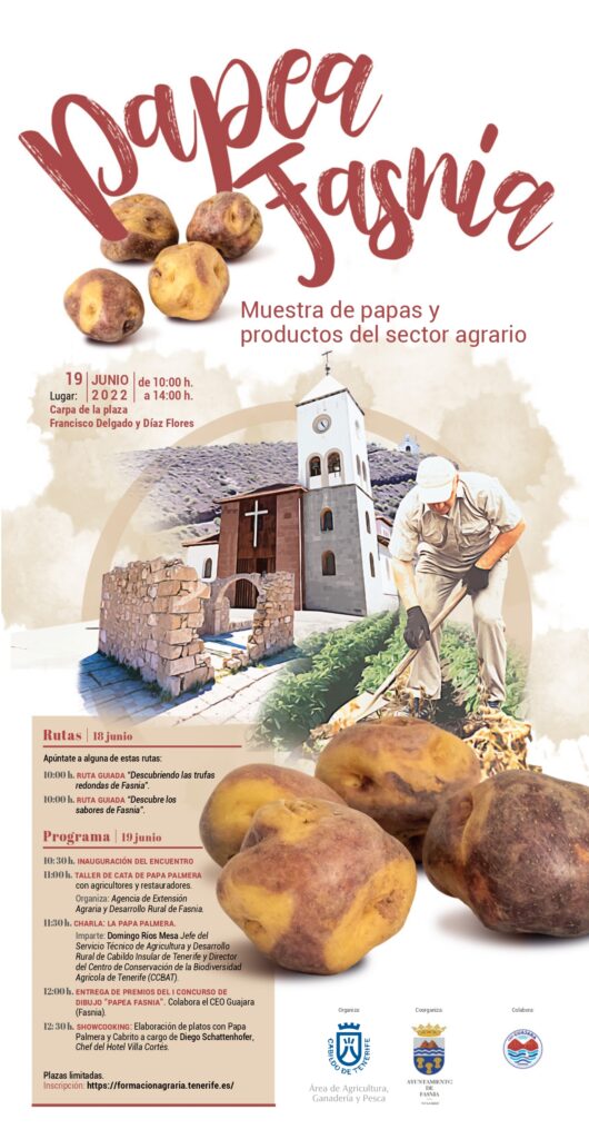 El magazine se da una vuelta por Fasnia, al Sur de Tenerife, donde este fin de semana se celebra Papea Fasnia, un encuentro que ya atesora varias ediciones ofertando un menú que combina deporte, naturaleza y gastronomía con actividades como rutas guiadas, talleres o showcookings… En esta edición la estrella invitada es una variedad de papa antigua, poco conocida y oriunda de esta zona, como es la papa palmera.