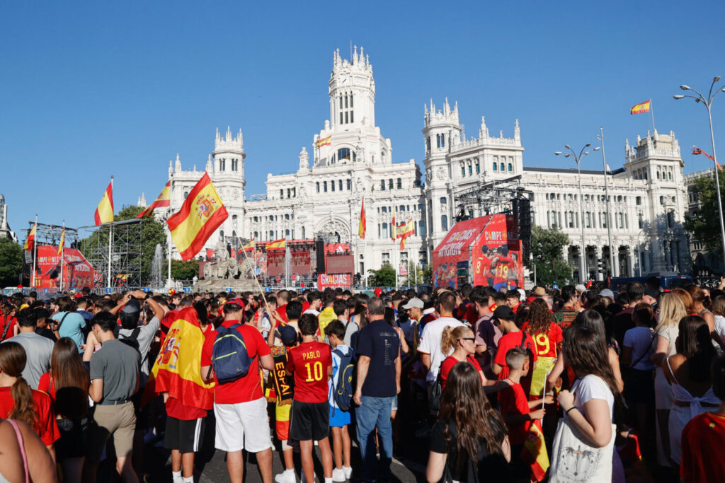 Miles de personas se reúnen en Cibeles para celebrar una nueva Eurocopa