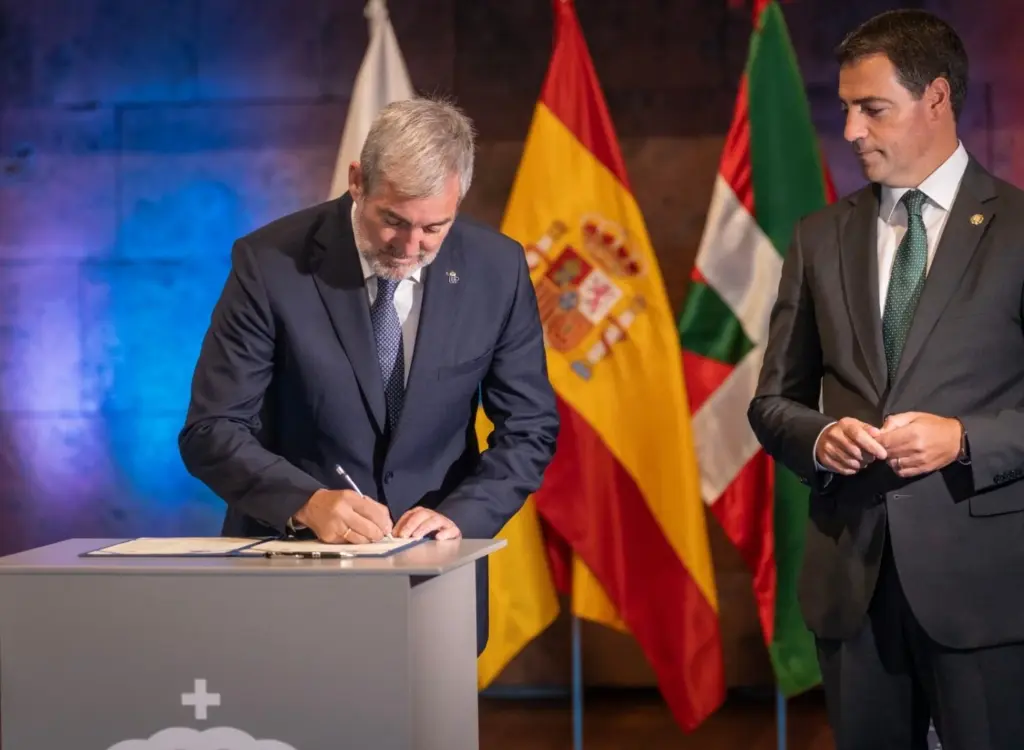 Durante la mañana, el presidente canario y el Lehendakari vasco, firmaron en Tenerife un convenio bilateral sobre desarrollo de la I+D+i en ambas comunidades autónomas.