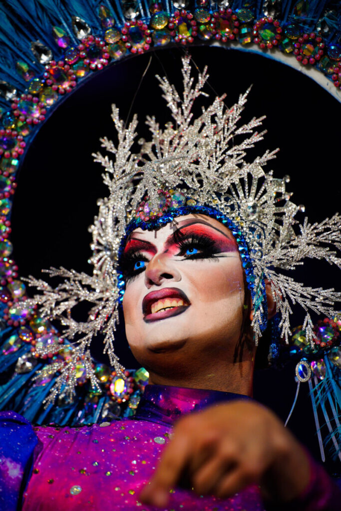 Diferentes drags participaron este viernes en la Gala Drag de Los Cristianos, después de tres ediciones sin poder celebrarse por la pandemia, una noche cargada de emociones y que se convirtió en un evento que congregó a cientos de personas en el recinto, como anuncio del último fin de semana del segundo Carnaval más importante de la Isla.