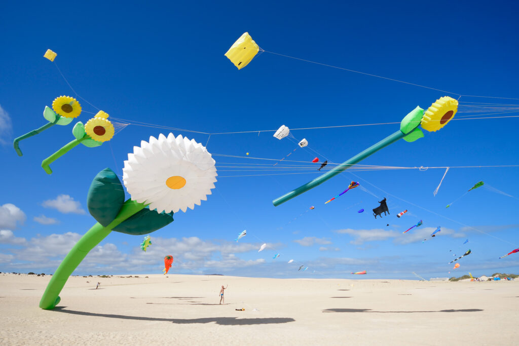 En esta ocasión, más de 200 cometistas de hasta 15 nacionalidades diferentes tomarán los cielos de las Grandes Playas de las Dunas de Corralejo para ofrecer todo el espectáculo y la fantasía de sus cometas. Una ubicación novedosa la de este año, para facilitar el acceso al público.