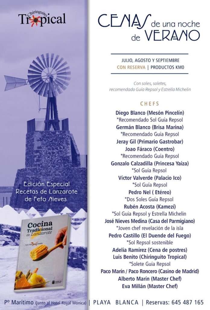 Luis Benito (Chiringuito Tropical, Lanzarote) explica la edición que ya prepara de las Cenas de Noches de Verano con numerosos cocineros y cocineras que han sido invitados. Esta vez la temática que inspira la propuesta de cada uno se basa en el libro de Fefo Nieves, “Cocina Tradicional de Lanzarote”, presentado la semana pasada en el Monumento al Campesino.
