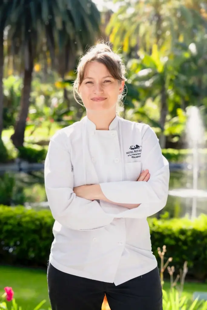 Ria Janhke, la chef ejecutiva del Hotel Botánico de Puerto de la Cruz, es un ejemplo de cómo se preparan los menús de los días grandes y detalla buena parte de lo que nos espera en la celebración culinaria del hotel portuense de referencia, mientras que los maestros pasteleros Alexis García y Diego Marín, éste procedente de Vigo, hace un extraordinario e inédito tándem de excelencia para preparar unos panetones formidables, incluidos los salados.