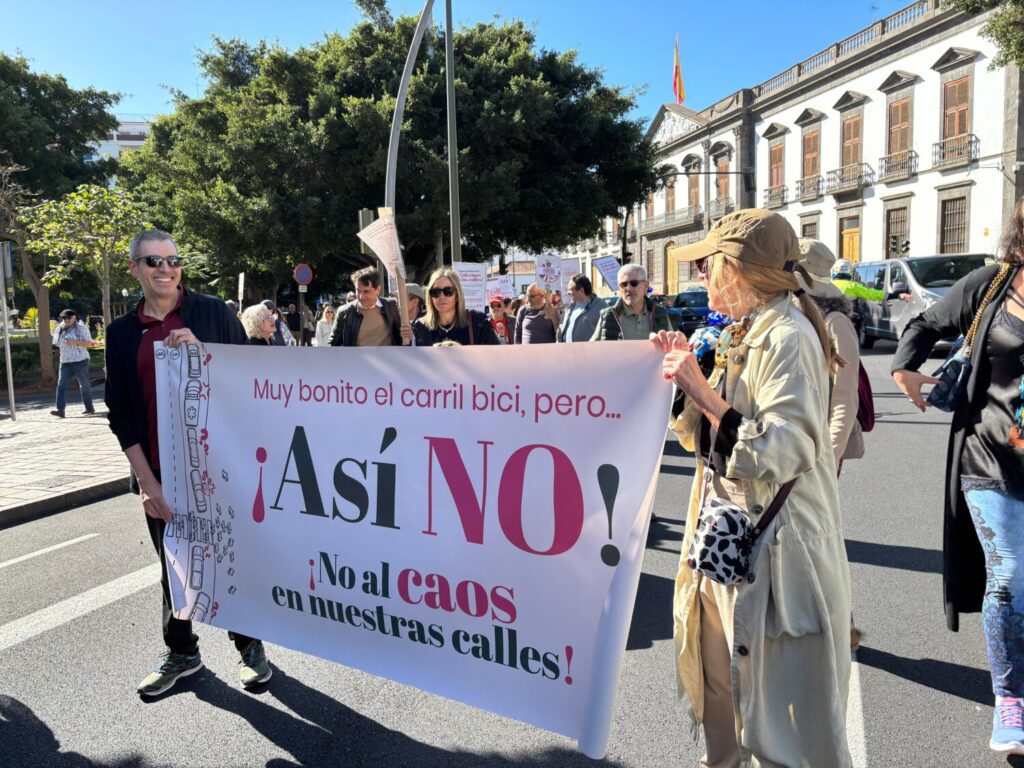Asociaciones de Vecinos de Santa Cruz de Tenerife han salido a la calle este sábado en contra la implantación en la ciudad de la denominada Red Ciclable, lo que representa ciclocalles y carriles segregados para patinetes y bicicletas en 61 vías del centro.