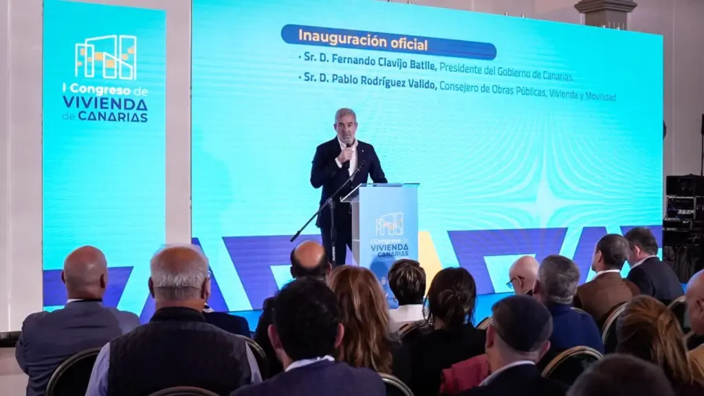 El presidente señaló que este Congreso ha nacido con el propósito de analizar y compartir soluciones reales para seguir avanzando en la política de vivienda en Canarias. Así, en su intervención subrayó que la política de vivienda en Canarias se está abordando desde tres ópticas fundamentales: garantizar vivienda para los canarios, asegurar que puedan acceder a ella en función de sus recursos, y evitar que las familias destinen más del 30–35% de sus ingresos a pagarla, lo que supone “una línea roja para prevenir la exclusión social”.