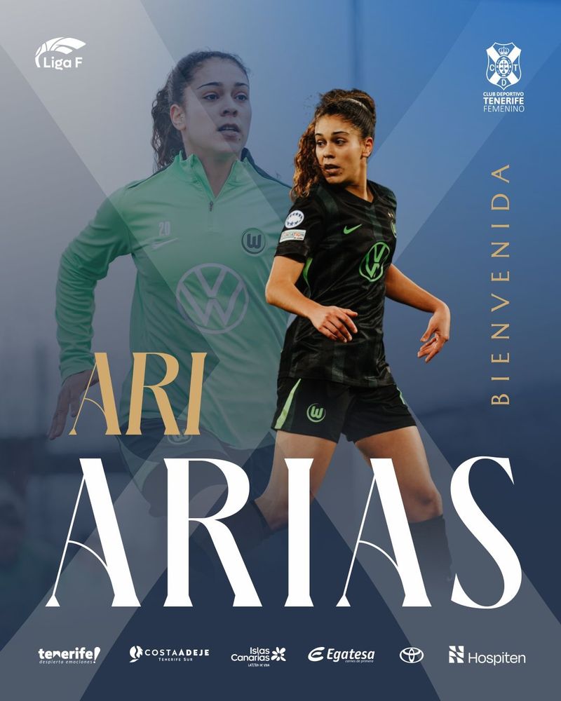 El Costa Adeje Tenerife anunció este martes su segunda incorporación de la temporada con Ari Arias, delantera procedente del VfL Wolfsburgo alemán, que llega traspasada al primer equipo blanquiazul para disputar la Liga F 2025-26.