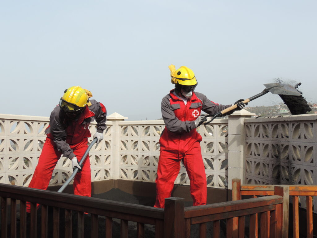 Por otra parte, los diferentes Equipos de Respuesta Inmediata en Emergencias de Cruz Roja, desplazados en La Palma desde el inicio de la erupción, continúan desarrollando sus actividades de apoyo a la población del Valle de Aridane. Actualmente, hay que destacar aún más la labor de limpieza y extracción de ceniza. A día de hoy, siguen realizando el Equipo de Búsqueda y Salvamento en Medio Terrestre en las zonas más cercanas al cono volcánico, como San Nicolás, Jedey o Las Manchas de Abajo.