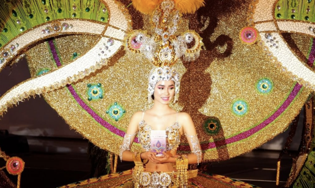 En tercer lugar desfiló Lara Herrera Hernández, con la fantasía ‘Destellos en el desierto’, de las diseñadoras Teresa Barrera y Concepción Padilla. Un diseño en representación de Almacenes El Kilo y Café/Bar Cacao.