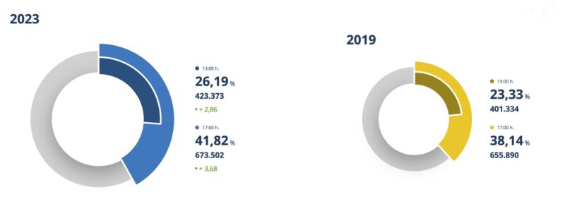 Según el segundo dato de avance de participación facilitado por el Ministerio del Interior y el Gobierno de Canarias, por provincias en Las Palmas la participación registrada hasta las 17:00 horas es del 39,80 %, lo que representa un 1,87 por ciento más que a la misma hora de los comicios de 2019.