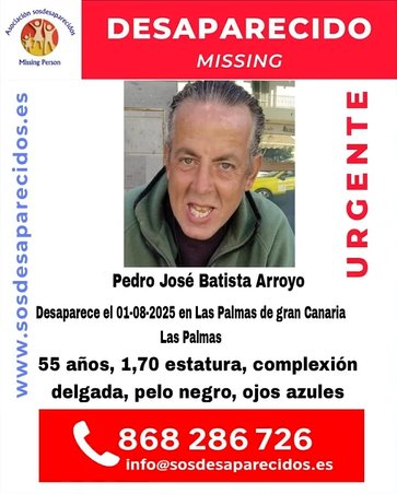 La Policía Nacional busca a Pedro José Batista Arroyo, desaparecido el viernes, 1 de agosto, en Las Palmas de Gran Canaria.