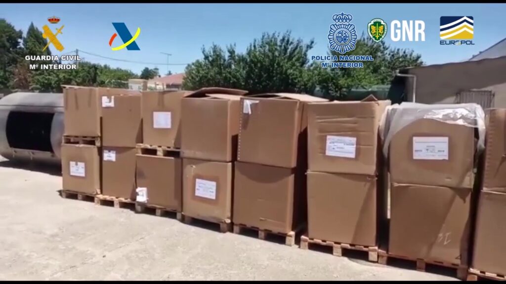 Se realizaron 59 registros en Portugal y 4 en España en los que se han intervinieron más de once toneladas de tabaco crudo, diverso material para su procesado y empaquetado.