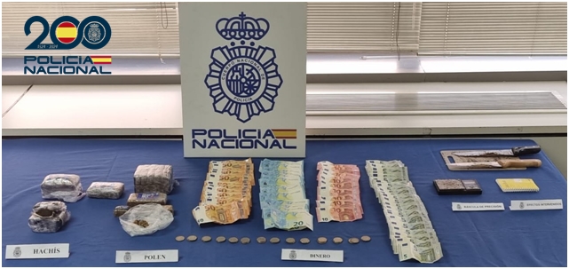 En el registro domiciliario intervinieron 888 gramos de Polen de Hachís, 309 gramos de Hachís, una báscula de precisión, elementos para el corte y dosificación de la droga, y 1.587 € euros en efectivo.