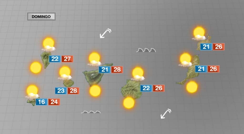 TENERIFE: Cielos nubosos a primera hora por el norte y el nordeste. Darán paso al sol, pero esas nubes serán abundantes al final de la tarde. Sol en el resto, con algo de calima que irá a menos por la tarde. Temperaturas menos calurosas, 26 – 29ºC costa.