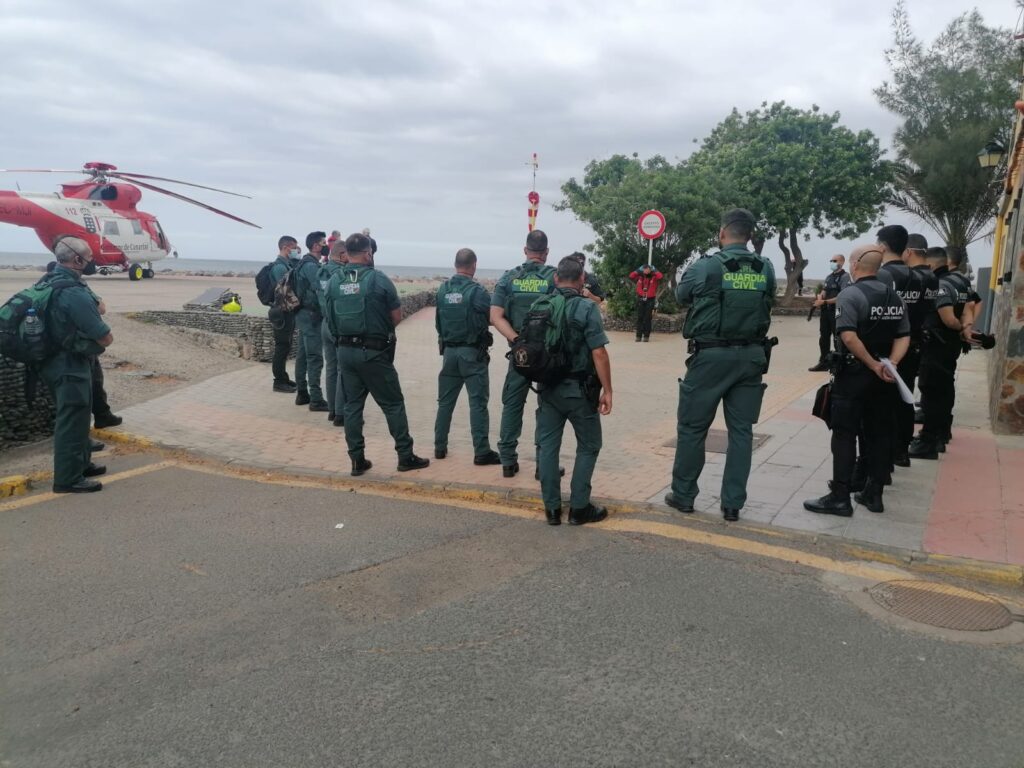 Despliegue policial en el municipio grancanario de La Aldea de San Nicolás por una fiesta multitudinaria en la playa de Guguy, más conocida como Güigüí. Una playa de difícil acceso por tierra. Una veintena de agentes y un helicóptero se han desplegado esta mañana en la zona.