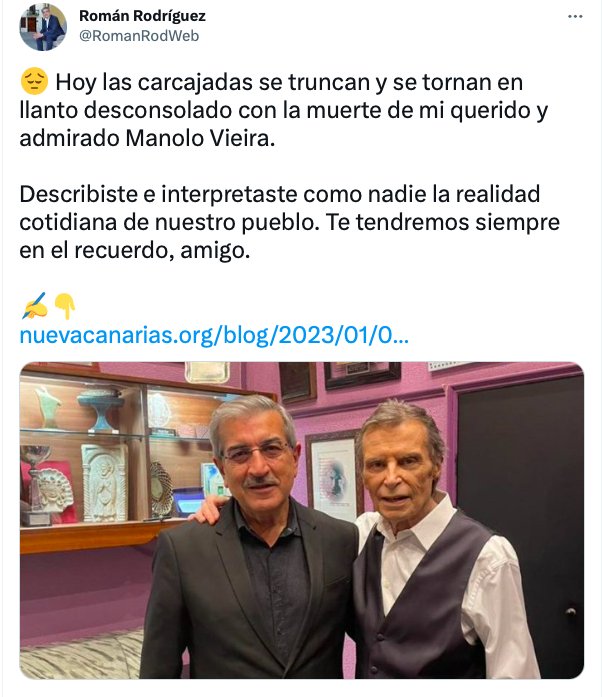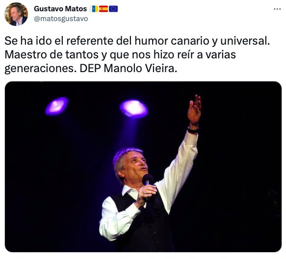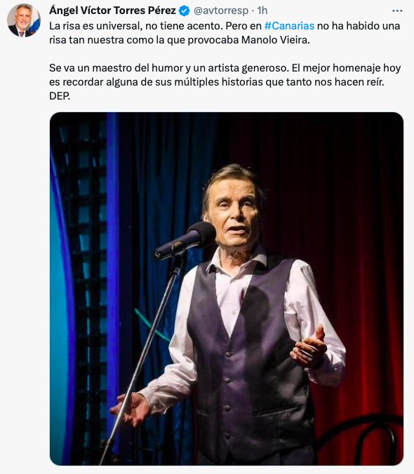 El Presidente de Canarias, Ángel Víctor Torres, a través de su perfil de twitter ha querido recordar a Manolo Vieira como un maestro del humor.