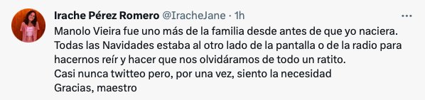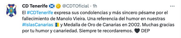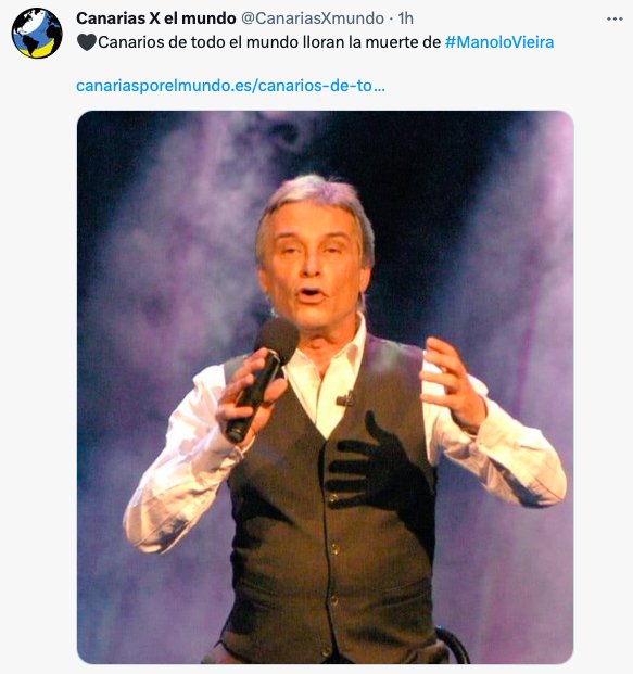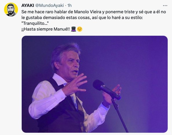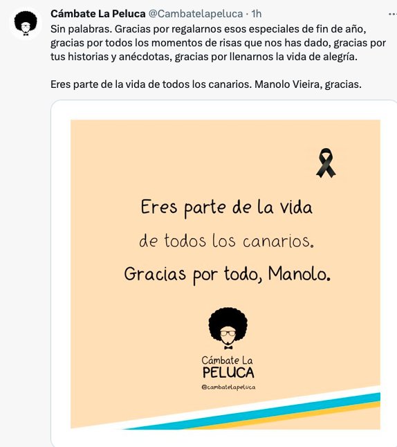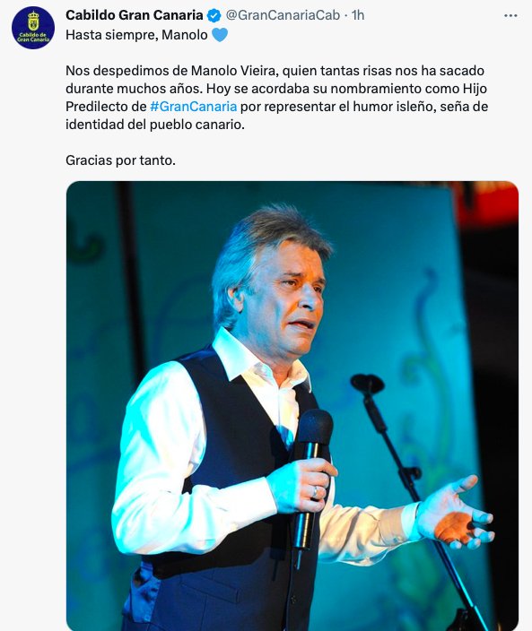Son muchas las personas que han querido rendir su homenaje a Manolo Vieira nada más conocer su fallecimiento este miércoles. Las redes sociales se han llenado de mensajes hacia el maestro del humor canario que ha traspasado fronteras