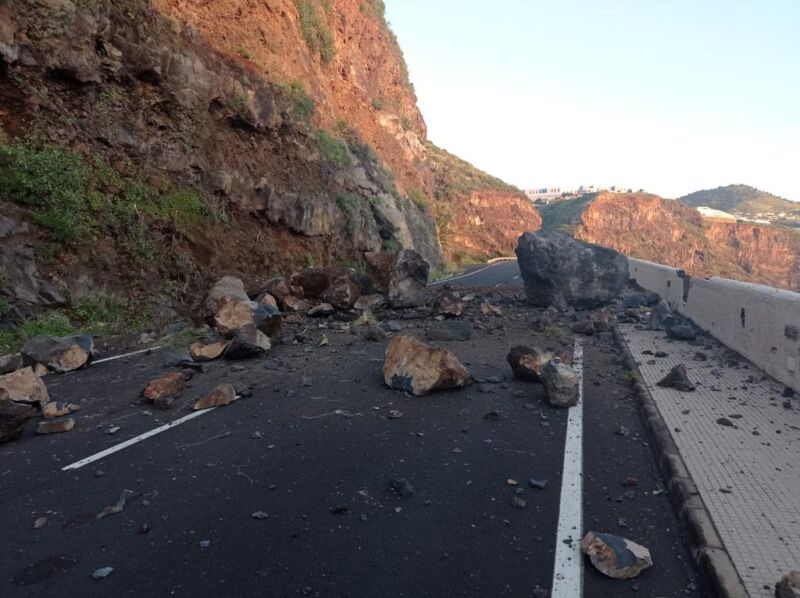 No se han registrado daños personales, aunque sí se han visto afectados levemente hasta seis vehículos, que se encontraban estacionados en la parte baja de la vía. Los operarios del Cabildo procederán este lunes a la retirada de los escombros. Como alternativa para la circulación, se puede usar la ruta por la circunvalación.
