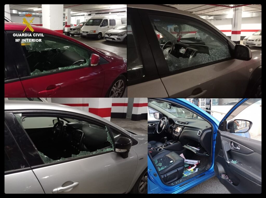 Todos los actos fueron provocados por daños ocasionados en vehículos y robo de las pertenencia que había en su interior, incluso sustrajo dos vehículos, perpetrando todos estos hechos en interior de garajes comunitarios de edificios ubicados en estos municipios, según ha informado la Guardia Civil en nota de prensa.