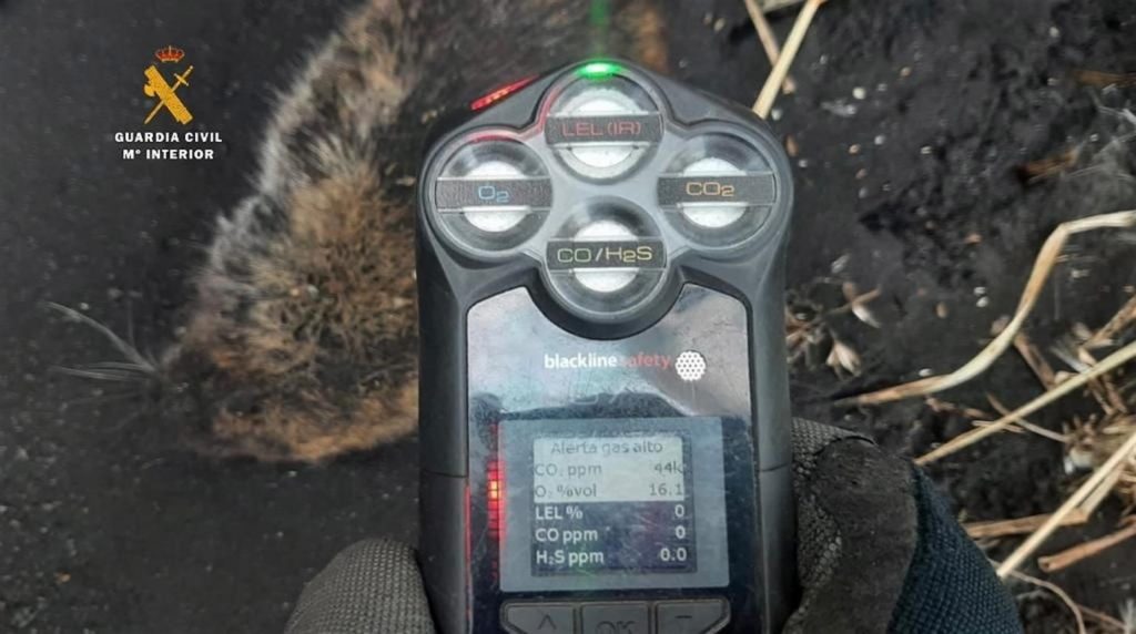 Un equipo del Instituto Volcanológico de Canarias (Involcan) y de la Guardia Civil ha tenido que abandonar la zona de la erupción de La Palma donde tomaba datos del volcán al dispararse las alarmas de su sistema de detección de gases potencialmente letales.
