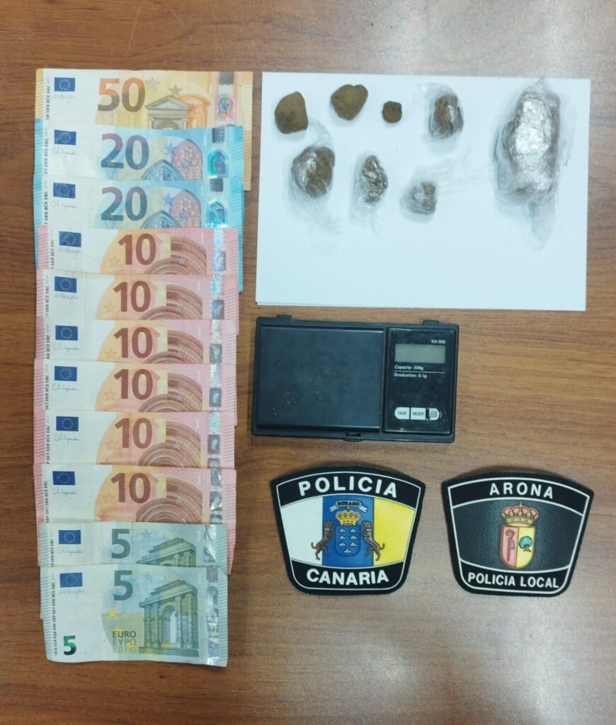 La actuación se produjo cuando los agentes los sorprenden con varios trozos de lo que pudiera ser hachís. Uno de ellos de aproximadamente de 30 gramos, así como distintos envoltorios con más sustancias, listas para su distribución y dinero fraccionado.