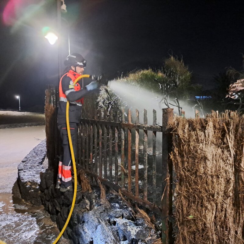 Durante la pasada madrugada de viernes se produjeron diversas actuaciones, la primera de ellas fue una pila de hamacas ardiendo, en la Playa de Las Cucharas, en costa Teguise