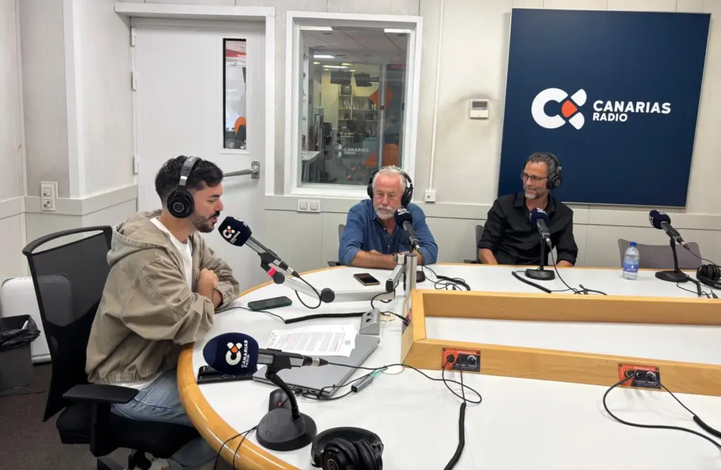 Tomás Galván, locutor de la Radio Canaria y quien será uno de los presentadores de la gala de los premios, «El Colorao» y Lisandro Rodríguez.