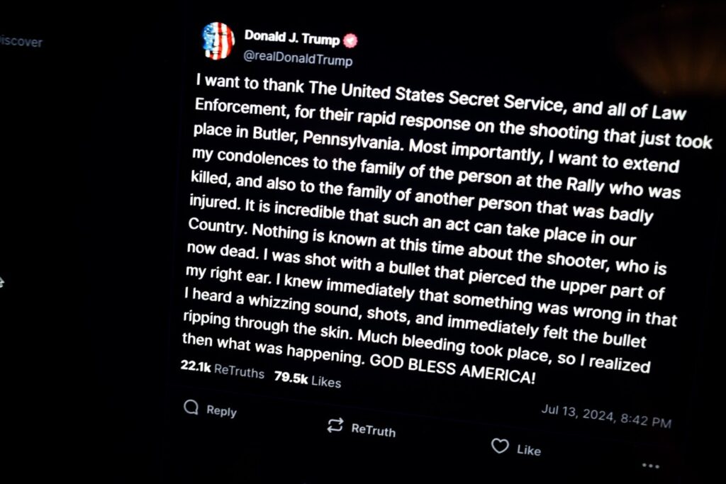 El propio Trump ha relatado el episodio a través de su red social, Truth Social, donde ha dado las gracias «al Servicio Secreto de Estados Unidos y a todas las fuerzas del orden por su rápida respuesta al tiroteo» y ha expresado sus «condolencias a la familia de la persona que murió en la manifestación y también a la familia de otra persona que resultó gravemente herida«.