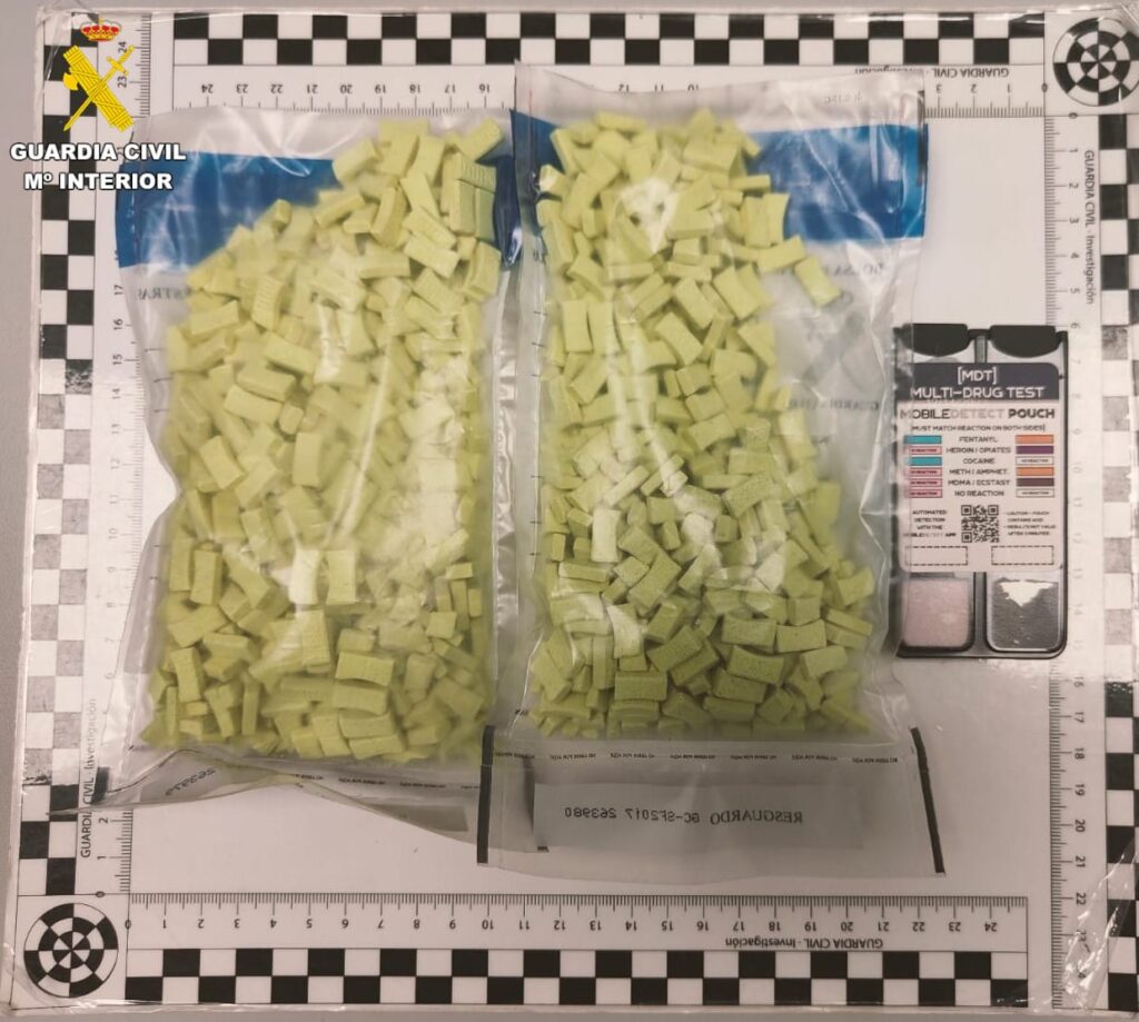 La Guardia Civil el pasado 17 de mayo, ha detenido a dos varones, como presuntos autores de un delito de tráfico de drogas. Además, a uno de ellos por delito de resistencia y desobediencia agentes de la autoridad. Todo ello debido a que intentó transportar en un vehículo 920 pastillas de éxtasis con un peso de 362,12 gramos, en la localidad de Santa María de Guía.