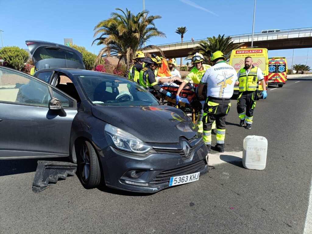Los bomberos de Gran Canaria rescatan dos personas después de sufrir un accidente cerca del Centro Comercial Atlántico Vecindario