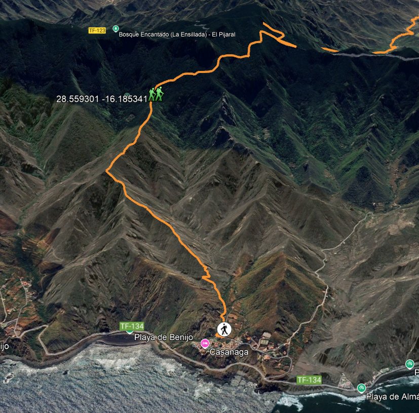 La primera realizó el sendero de bajada y logró contactar con los afectados sin poder llegar hasta ellos. La segunda tomó el relevo en Benijo y solicitó la colaboración de la Unidad de Drones, quien se encargó de realizar el sendero en sentido inverso, de abajo hacia arriba, ayudando en las labores de localización, debido a que la zona era de difícil acceso, con vegetación y poca visibilidad.