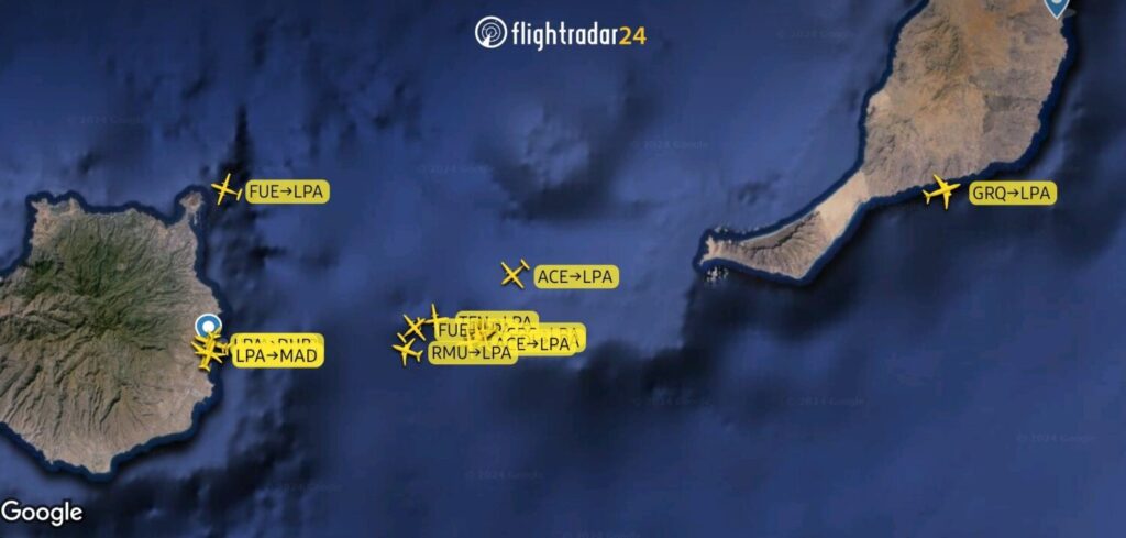 Desde la torre de control se comenzó a desviar una decena de vuelos que tenían previsto aterrizar en Gran Canaria a los dos aeropuertos de Tenerife, Fuerteventura y Lanzarote. La mayoría de los vuelos desviados eran nacionales e interinsulares.