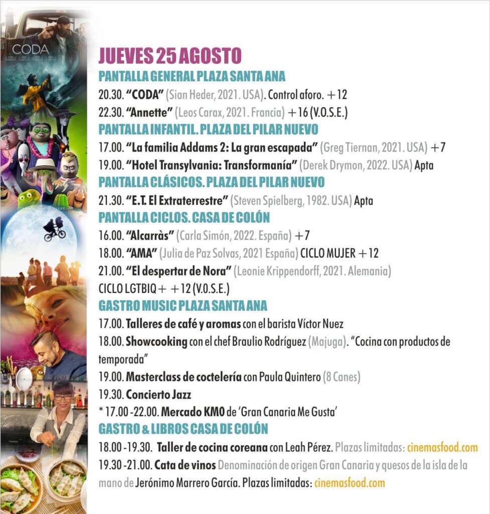 de cine, ‘masterclass’ gastronómicas, música, talleres, teatro, animación infantil,