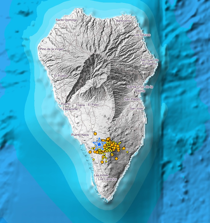 El enjambre sísmico en el sur de La Palma ha continuado incrementando su actividad durante la pasada madrugada, subiendo la intensidad de los temblores, que permanecen a una profundidad media de 9 km.