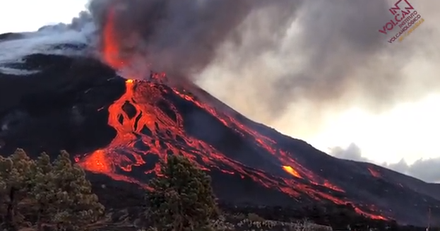El cono ya ha sufrido varios derrumbes desde el inicio de la erupción volcánica el pasado 19 de septiembre. La mañana de este lunes ya se producía un derrumbe parcial que provocó una gran emisión de lava.