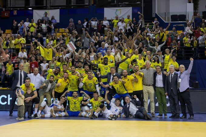El conjunto insular cedió en los dos primeros sets para recuperarse en el tercero. Pese a ello los grancanarios perdieron el encuentro por 3-1. Pero, tras empatar a puntos ambos equipos, hubo que disputarse un set de oro en el que los isleños se impusieron por 8-15, lo que le dio su billete a la siguiente fase.