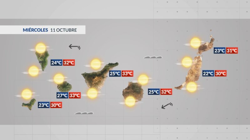 La Palma: Pocos cambios. Las temperaturas oscilarán entre los 24 y los 32 grados. Nubes altas a primera y última hora. Podrían aparecer brumas en la costa oeste.