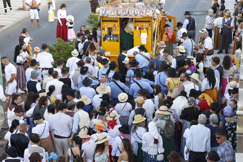 La tarde contó con la participación de más de 2.000 personas que, ataviados con vestimenta tradicional, participaron del recorrido que estuvo encabezada por la carreta El Coche de Hora, con la agrupación El Cañizo; El Tablero la Agrupación Roca Canaria y su cuerpo de baile Horizonte Maspalomas; la carroza Telde ‘La Tartana’ con los Tartaneros; El Patronato (San Fernando) con la agrupación folclórica La Parranda Las Dunas; y la carreta La Quesera con el grupo Los Fiesteros.
