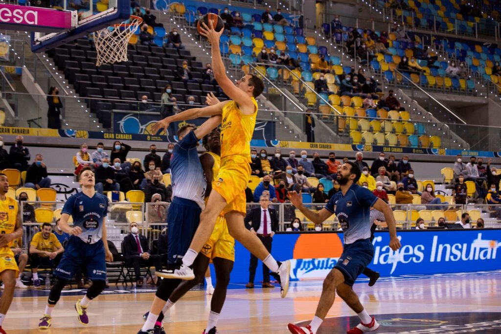 Tras un inicio repleto de errores y pérdidas, sería el Monbus el primero en ver aro tras casi tres minutos de despropósitos. El Gran Canaria intentó enderezar el rumbo, con el acierto de Slaughter y Kramer, pero era imposible neutralizar el empuje inicial de Scrubb, desde el perímetro, y de Birutis en la pintura (7-17 tras 7 minutos de juego).