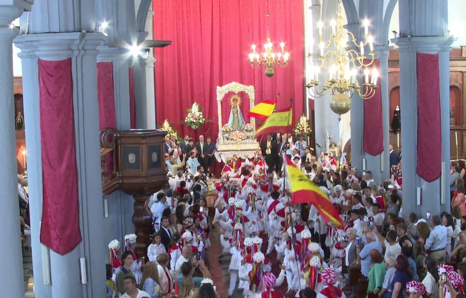 Desde las 10:00 horas, los grupos de bailarines de cada pueblo entraron uno a uno a la Iglesia matriz de La Concepción, siguiendo el orden de las rayas establecido durante La Bajada: Sabinosa, El Pinar, El Golfo, Isora, San Andrés, El Norte y Valverde. Además, cada uno de ellos ofreció su venia a la Patrona en un emotivo acto de devoción colectiva.