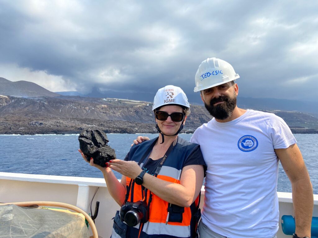Inés Galindo, coordinadora científica del IGME con un colega del IEO