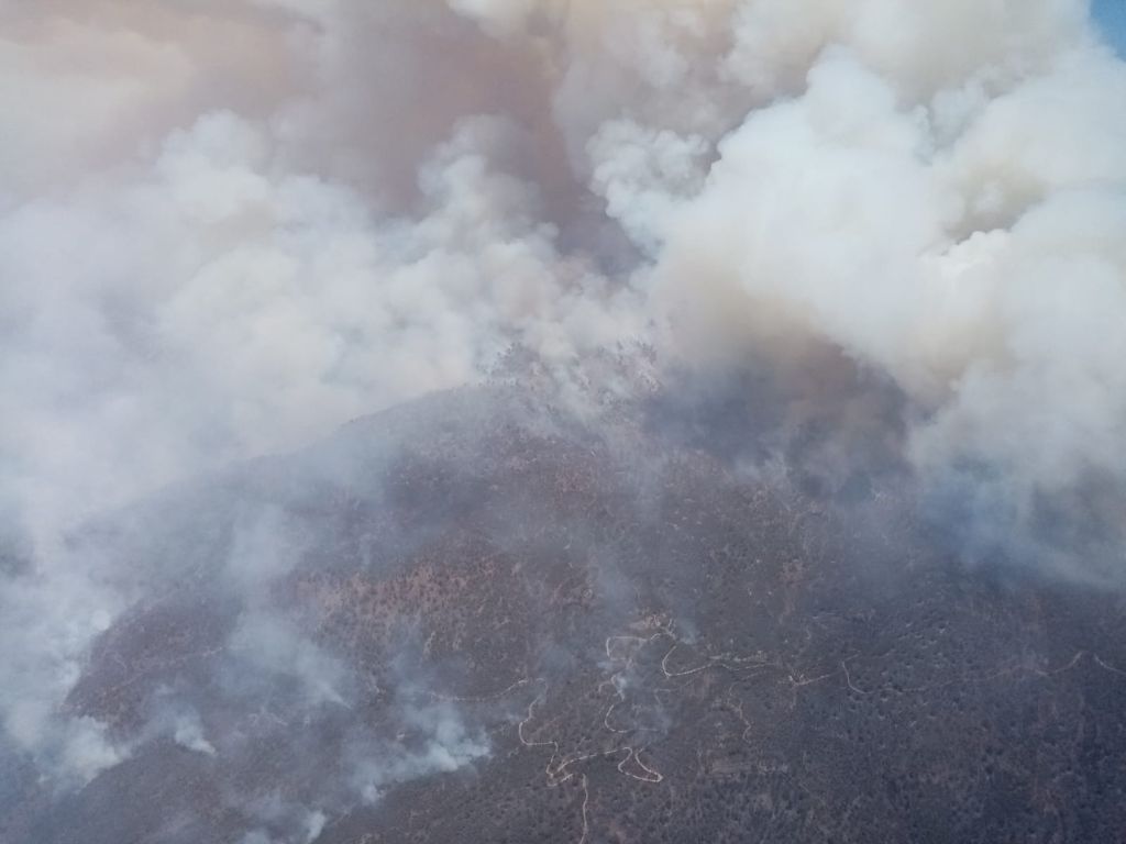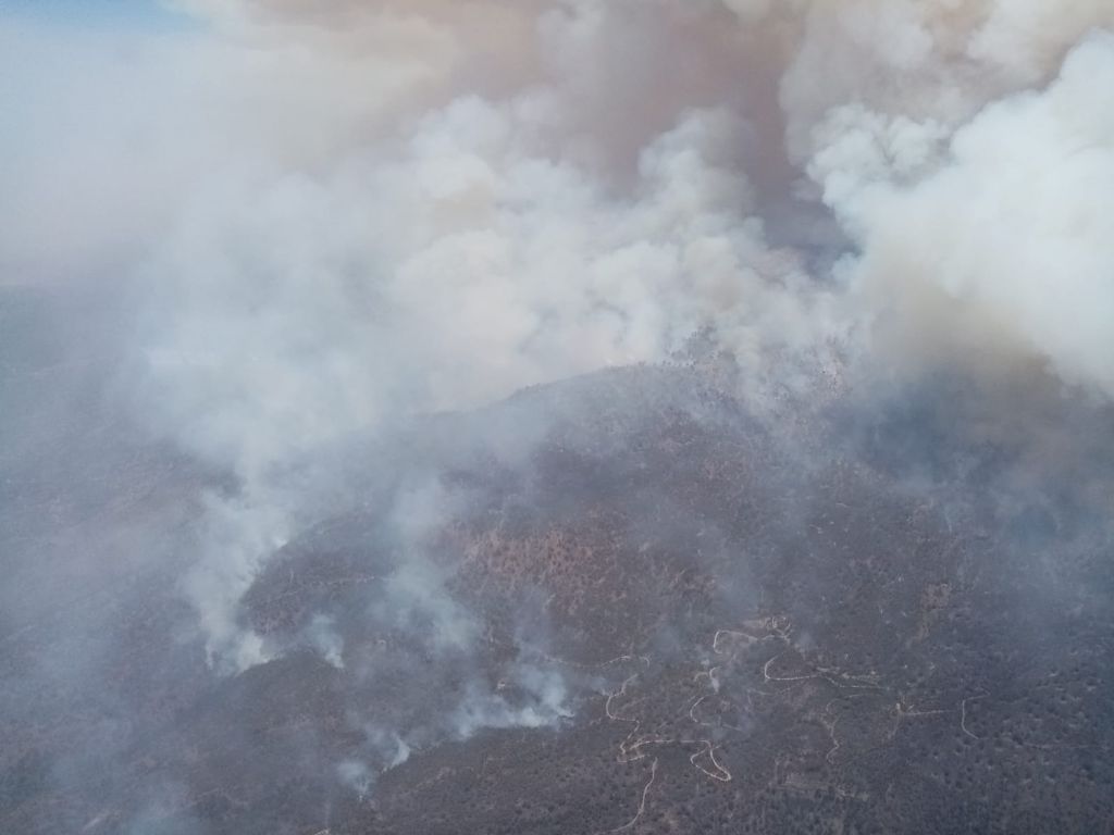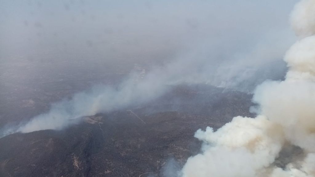 El incendio, que es de suelo, no tan virulento como el de copa, está generando en todo caso mucho humo. Tiene un perímetro de unos 25 kilómetros y una superficie de 2.800 hectáreas. Su cabeza se dirige hacia el barranco del Río y tiene dos flancos bien definidos.