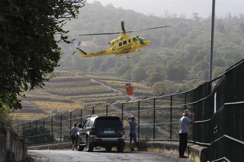 Los helicópteros que intervinieron este martes en el dispositivo de extinción del incendio de Tenerife realizaron 413 descargas, más de 500.000 litros de agua en las zonas afectadas por el fuego.