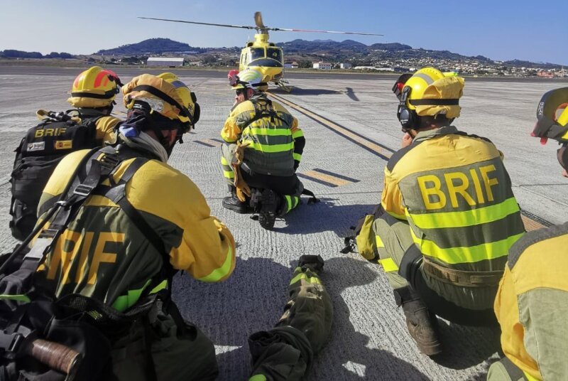 Una nueva brigada de la Brif de Puntagorda vuela desde La Palma a Tenerife para continuar trabajando en las labores de extinción del incendio de Tenerife, tras las últimas reactivaciones.