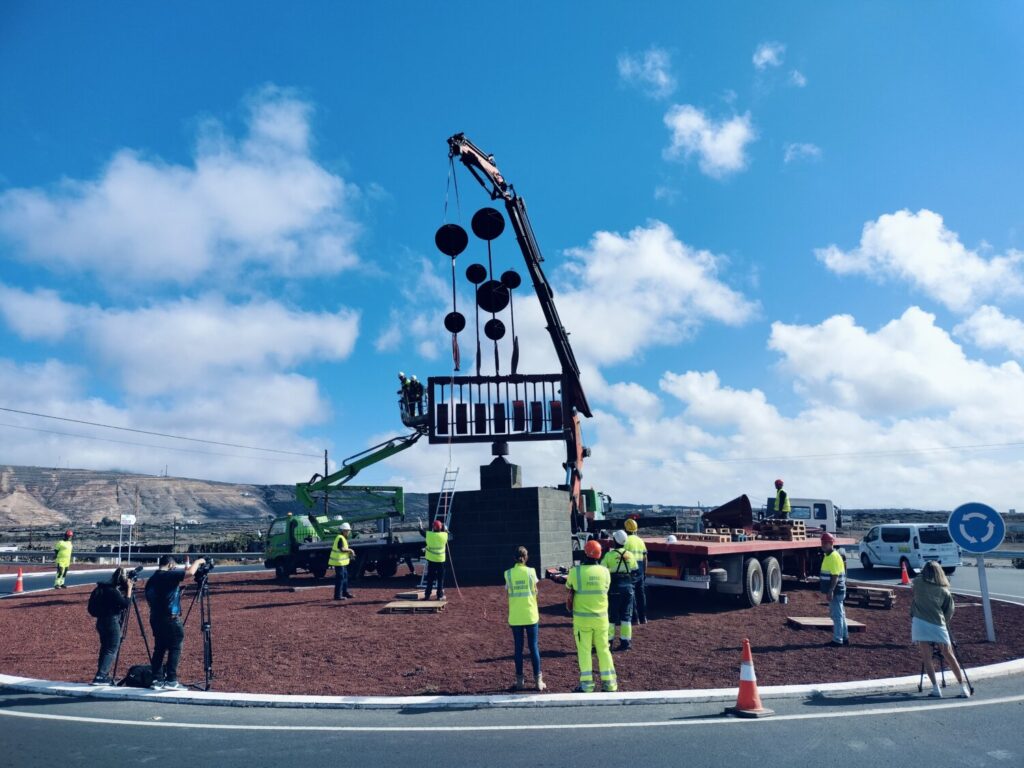 El emblemático Juguete del Viento de Arrieta, obra del artista conejero César Manrique, ha regresado a su ubicación original en la rotonda de entrada al pueblo tras un meticuloso proceso de restauración llevado a cabo por el Cabildo de Lanzarote.
