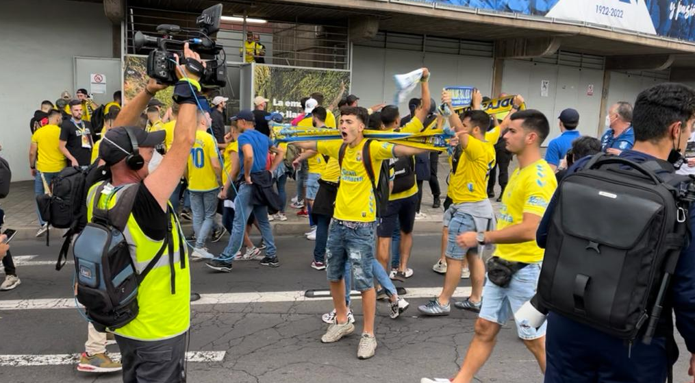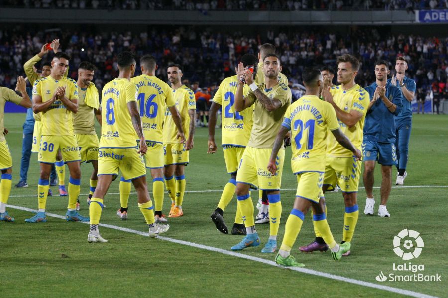 Los jugadores de la UD Las Palmas a su llegada a Tenerife. Imagen @UDLP_OficialInterior del Heliodoro Rodríguez López. Imagen RTVCAficionados de la UD Las Palmas. Imagen EFELa afición del CD Tenerife antes de iniciar el encuentro. Imagen RTVCAficionados de Las Palmas en el exterior del estadio. Imagen RTVCCalentamiento del CD TenerifeCalentamiento de la UD Las PalmasPresentación de los equipos. Imagen RTVCEquipo titular de la UD Las PalmasLos once jugadores del CD TenerifeXavi García Pimienta (i)Luis Miguel Ramis en el banquilloLa afición blanquiazul en el estadioZona del estadio de la afición amarillaVista del Heliodoro Rodríguez López con los aficionados del Tenerife en primer plano. Imagen RTVCKirian conduce el balón durante el partidoLos jugadores del Tenerife celebran el primer golJosé León tras marcar el golAitor Sanz con el balónLa UD Las Palmas saluda al público al final del partido