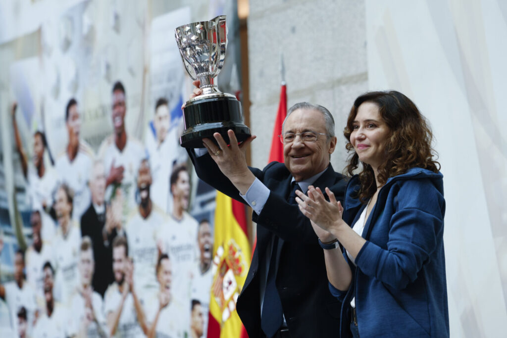 La mañana de este domingo ha estado cargado de actos para el equipo. Arrancaron desde las 9:30 cuando han recibido en la Ciudad Deportiva Real Madrid de Valdebebas el trofeo liguero de las manos de Pedro Rocha, presidente de la Real Federación Española de Fútbol (RFEF).
