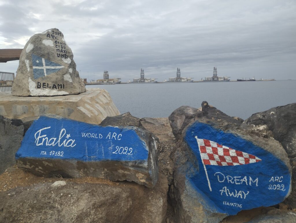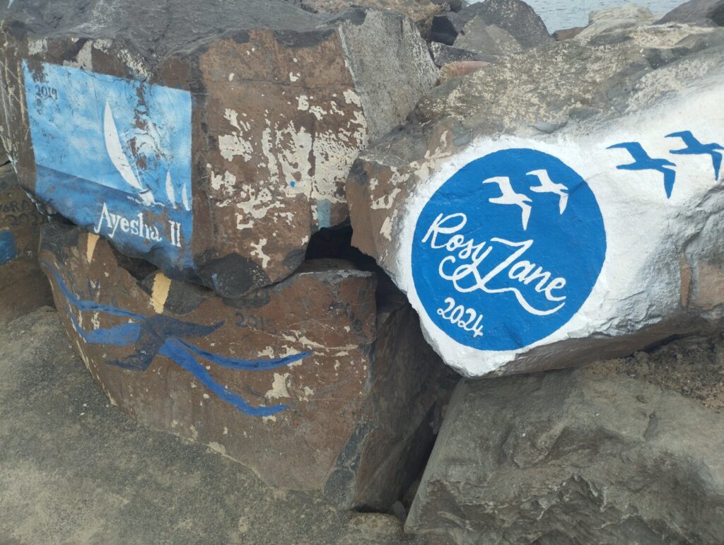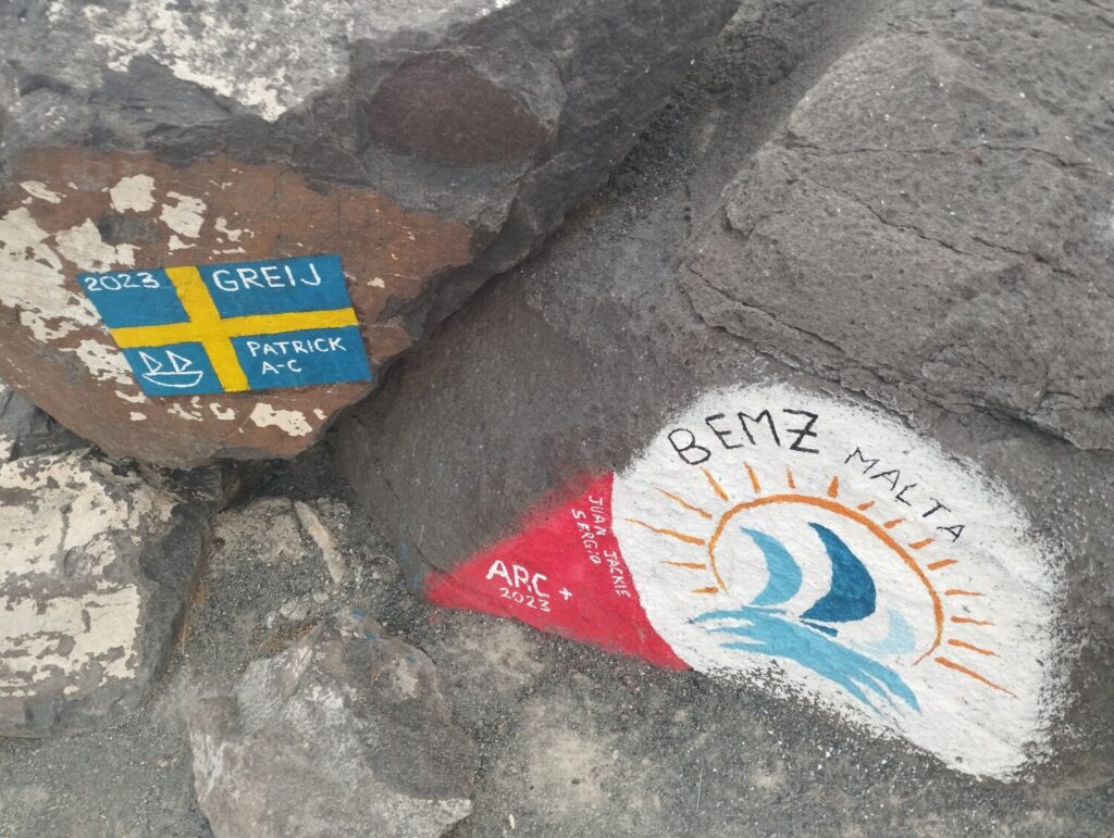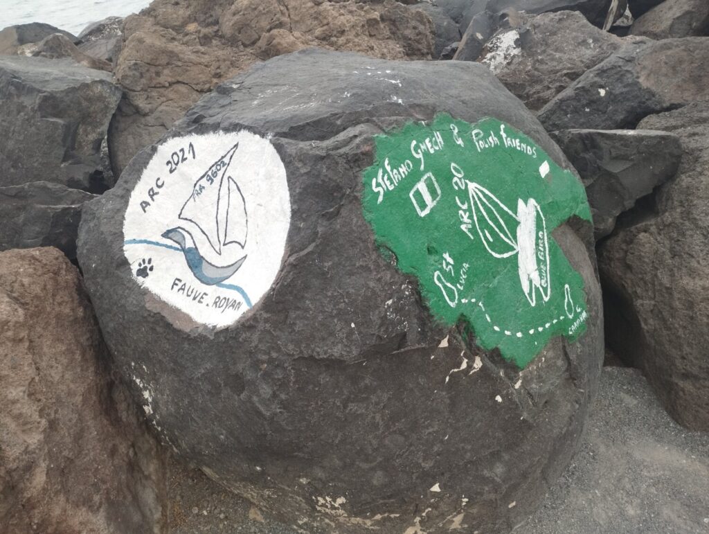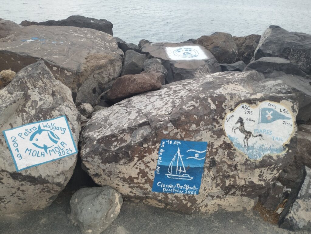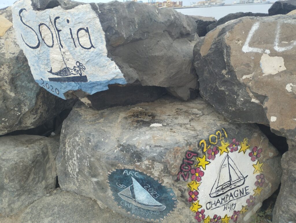 Pero quienes viajan a bordo de las embarcaciones de la Atlantic Rally for Cruisers (ARC) no son las únicas personas que dejan su impronta en el muelle. Durante años, otras tripulaciones han dejado mensajes y recuerdos en las rocas de este puerto.
